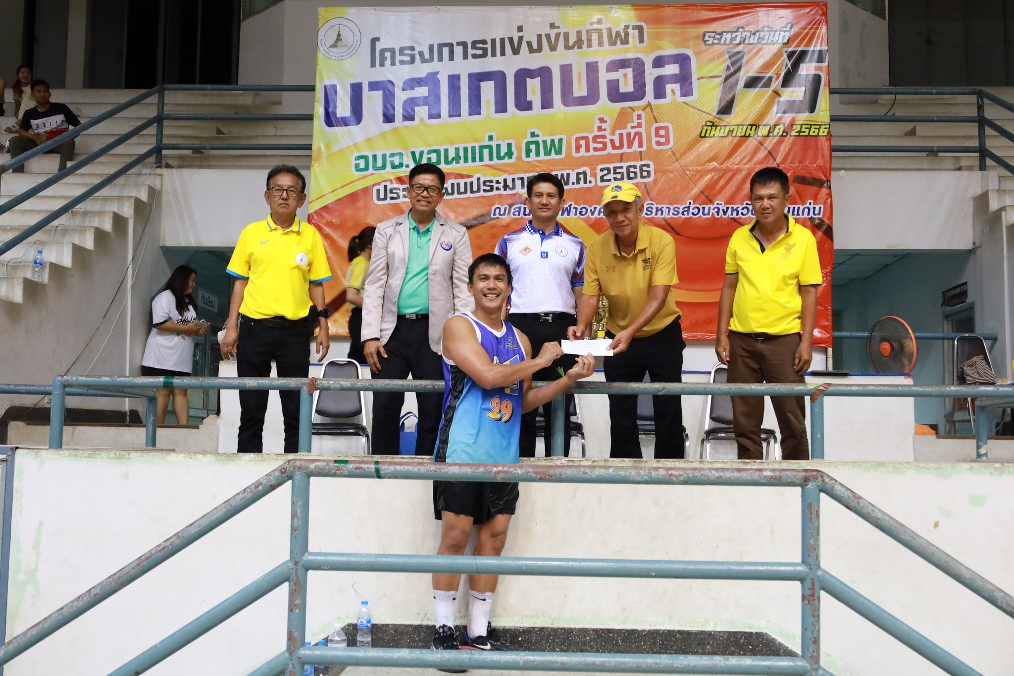 เมื่อวันที่ 6 กันยายน 2566 เวลา 22.30 น. ดร.พงษ์ศักดิ์ ตั้งวานิชกพงษ์ นายก อบจ.ขอนแก่น มอบหมายให้ นายสิทธิกุล ภูคำวงศ์ รองนายก อบจ.ขอนแก่น เป็นประธานในพิธีปิดและมอบรางวัลตามโครงการแข่งขันกีฬาบาสเกตบอล อบจ.ขอนแก่น คัพ ครั้งที่ 9 ประจำปีงบประมาณ พ.ศ.2566 โดยมี นายประชิต อึ้งประเสริฐ ผอ.กองการท่องเที่ยวและกีฬา นายสมชาย อิฐรัตน์ หัวหน้าฝ่ายกีฬา และผู้แทนจากสมาคมบาสเกตบอลแห่งประเทศไทย เข้าร่วมเป็นเกียรติ ณ สนามกีฬาองค์การบริหารส่วนจังหวัดขอนแก่น อ.เมืองขอนแก่น จ.ขอนแก่น