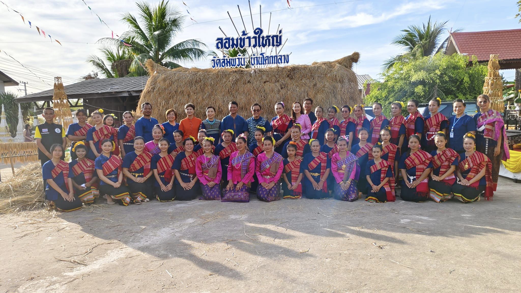 December 30, 2023, at 3:30 PM, Dr. Pongsak Tangwanichakapong, Chief Executive of the Khon Kaen Provincial Administrative Organization (KKPAO) assigned Mr. Tada Promsakha Na Sakolnakorn to represent and officiate the ceremony of the rice-harvesting festival at Kok Klang Village, Wa Tong Subdistrict, Phu Wiang District, Khon Kaen Province. This traditional ceremony is notably interesting, featuring rituals and offerings in accordance with the local beliefs. In attendance were Mr. Wipha Rueangprasertkul, Khon Kaen Provincial Council Member, and Mr. Tawich Pimpa, Phu Wiang District Chief, along with representatives from the Khon Kaen Geopark team, participating in the event.