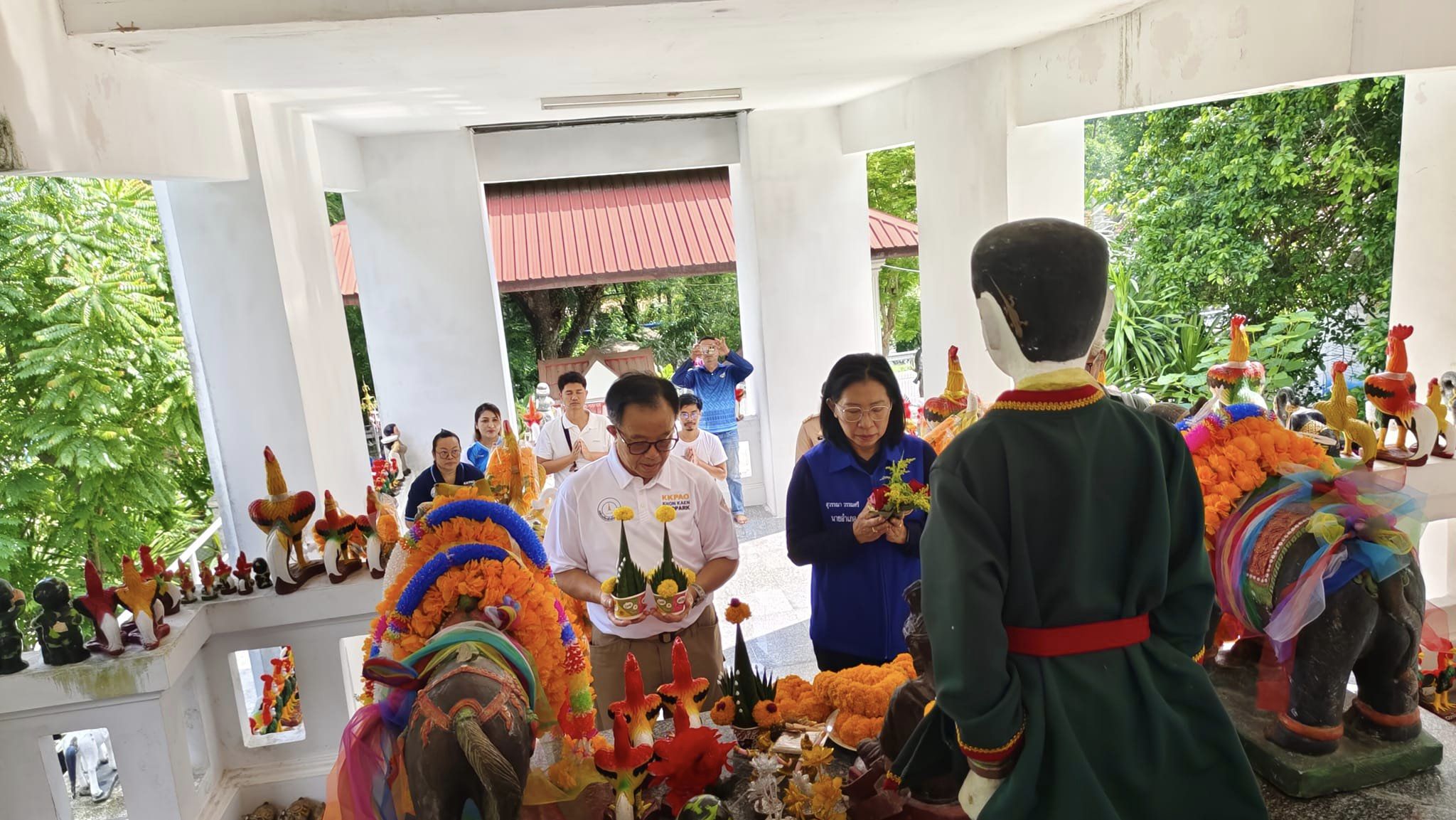 On the morning of Wednesday, July 10th, 2024, Mr. Tada Promsakha Na Sakolnakorn, the delegate Khon Kaen Geopark’s Director and Chief Executive of KKPAO, together with the Khon Kaen Geopark Working Team, the Phu Wiang District Chief, and devotees of Chom Narin Shrine, conducted a worship ceremony and sought permission to renovate the shrine’s area to enhance its beauty. The shrine had not been renovated for several years. This effort aims to make the shrine a central spiritual site for the people of Khon Kaen Geopark (Phu Wiang and Wiang Kao Districts) in the future.