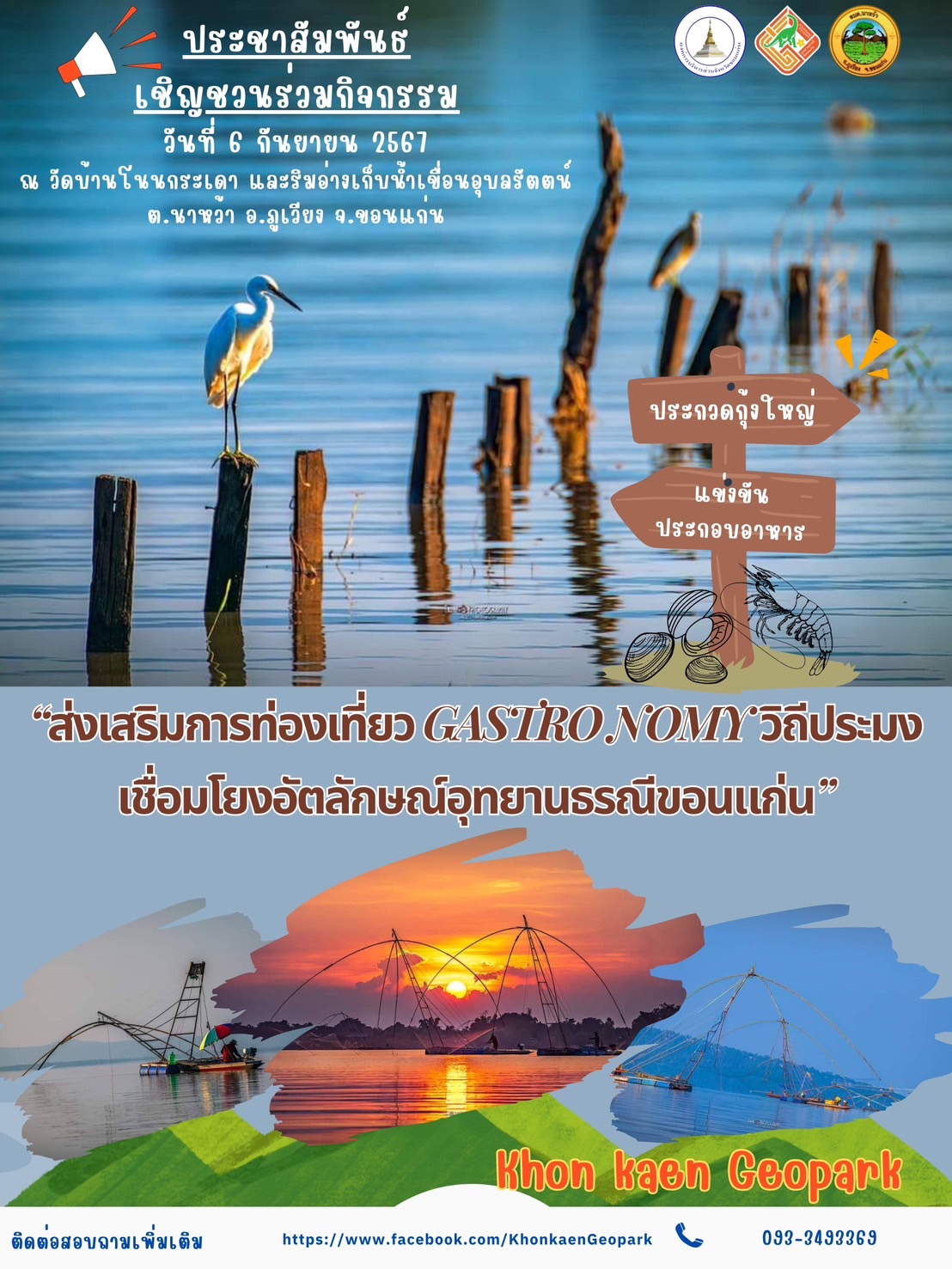 อุทยานธรณีขอนแก่นขอเชิญชวนทุกท่านร่วมกิจกรรม “ส่งเสริมการท่องเที่ยว Gastronomy วิถีประมง เชื่อมโยงอัตลักษณ์อุทยานธรณีขอนแก่น” ซึ่งกิจกรรมจะประกอบด้วย
