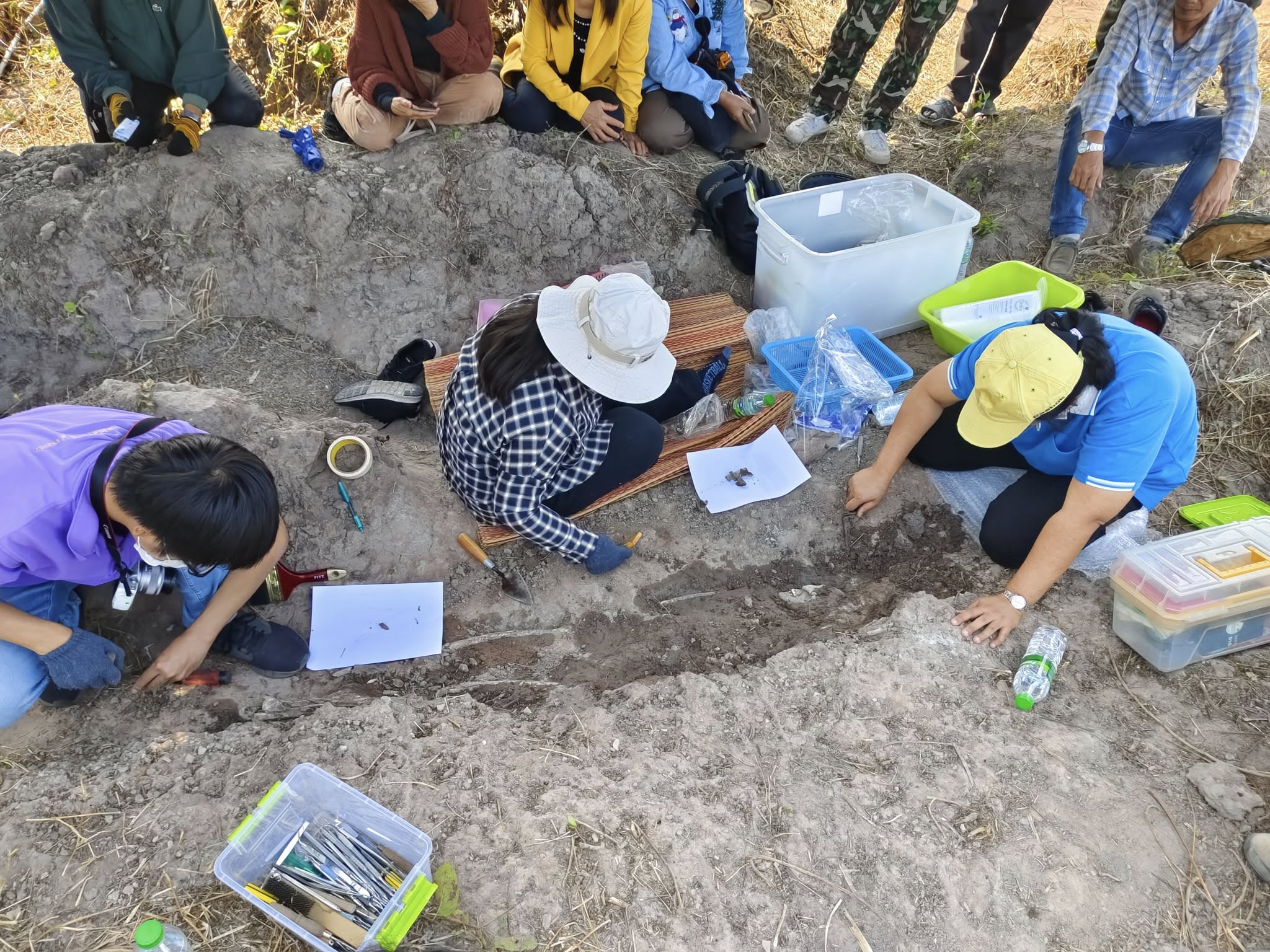 นางสาว ทิพย์วรรณ วงศ์อัศศไพบูลย์ นักโบราณคดีชำนาญการ สำนักโบราณคดีที่ 8 ขอนแก่น กรมศิลปากร พร้อมทีมงานลงพื้นที่ อำเภอเวียงเก่า เพื่อตรวจสอบและกู้ซากโบราณวัตถุ (โครงกระดูกมนุษย์ยุคก่อนประวัติศาสตร์)