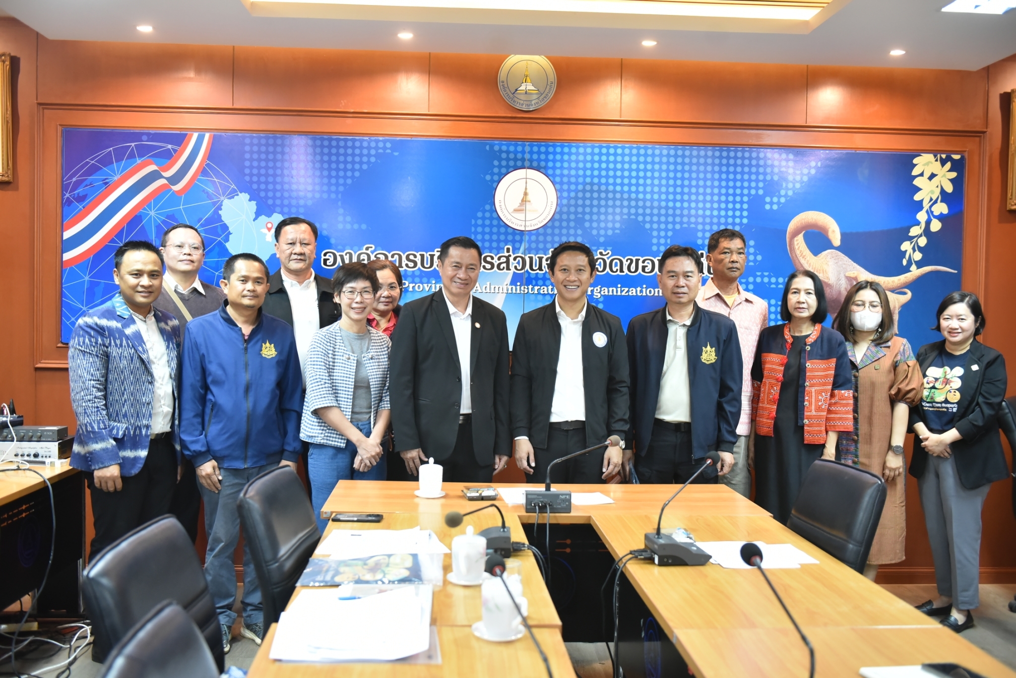 Also in attendance were Mr. Passkorn Kunthasap, Director of the Phu Wiang Dinosaur Museum, and Mr. Sutham Wongchun, Chief of Phu Wiang National Park and Deputy Director of Khon Kaen Geopark. Additionally, Mrs. Supaporn Phungern, Director of the KKPAO Tourism and Sports Division, and Ms. Phakasawan Pratchayakup, Manager of Khon Kaen Geopark, participated in the meeting held in the conference room on the 2nd floor of the Khon Kaen Provincial Administrative Organization building in Mueang District, Khon Kaen Province.