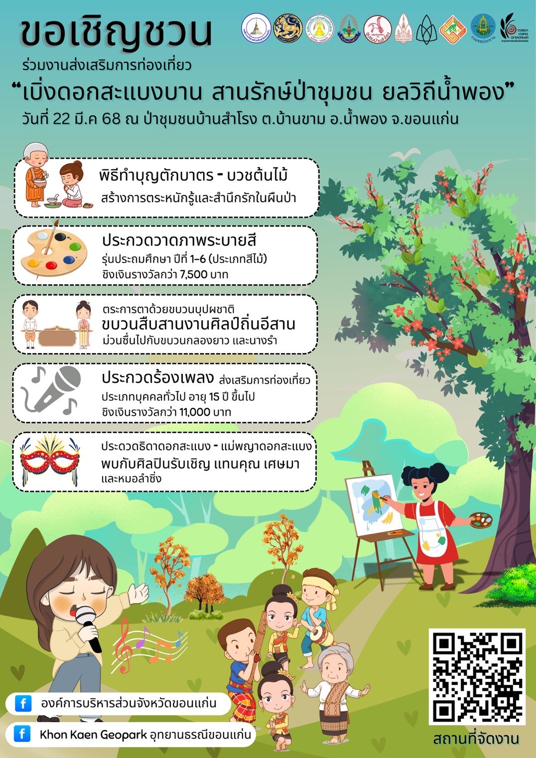 📢 ขอเชิญชวนพี่น้องประชาชนและน้องๆหนูๆ ร่วมงาน ” ส่งเสริมการท่องเที่ยว เบิ่งดอกสะแบงบาน สานรักษ์ป่าชุมชน ยลวิถีน้ำพอง”
