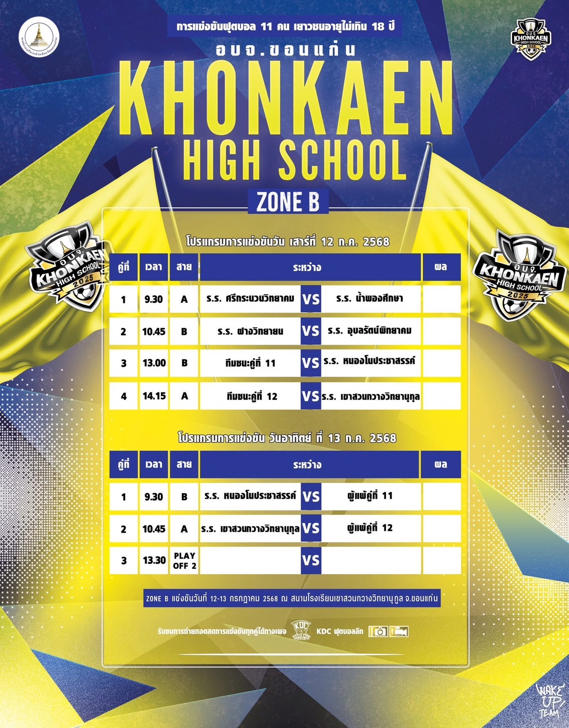 คู่ที่ 3 เวลา 13.00 สาย B ทีมชนะคู่ที่ 11 – ร.ร. หนองโนประชาสรรค์