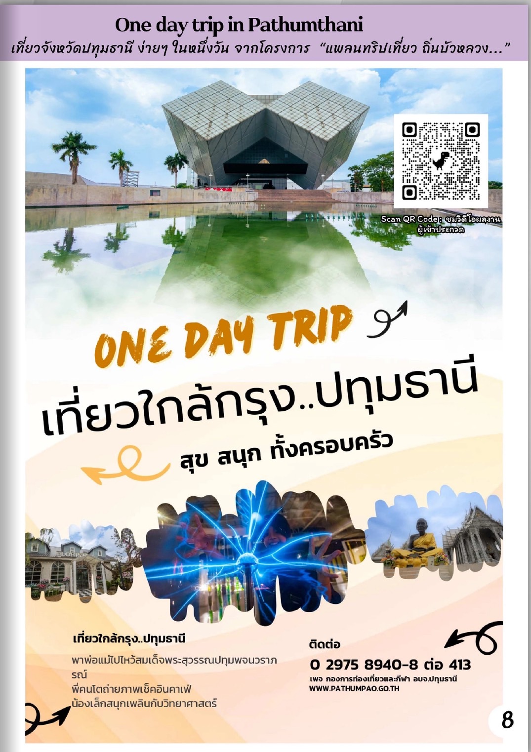 PR ปทุมธานี ฉบับที่ 26องค์การบริหารส่วนจังหวัดปทุมธานี ขอประชาสัมพันธ์วารสารอิเล็กทรอนิกส์ (E-BOOK) เพื่อส่งเสริมการท่องเที่ยวจังหวัดปทุมธานี ฉบับที่ 26 ประจำเดือน กันยายน 2568 มายังท่านเพื่อนำไปเผยแพร่ ประชาสัมพันธ์ให้กับนักท่องเที่ยวหรือผู้ที่มีความสนใจต่อไป ทั้งนี้รายละเอียดของวารสารอิเล็กทรอนิกส์ดังกล่าว สามารถดาวน์โหลดได้จาก QR Code ที่ปรากฏท้ายหนังสือฉบับนี้